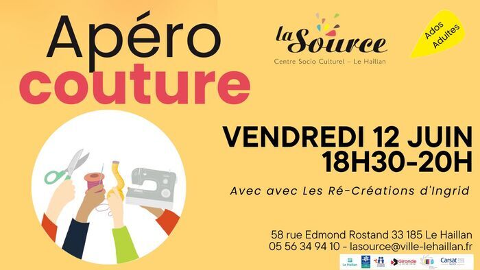 Inscription : https://www.helloasso.com/associations/centre-socio-culturel-la-source/evenements/apero-couture-juin