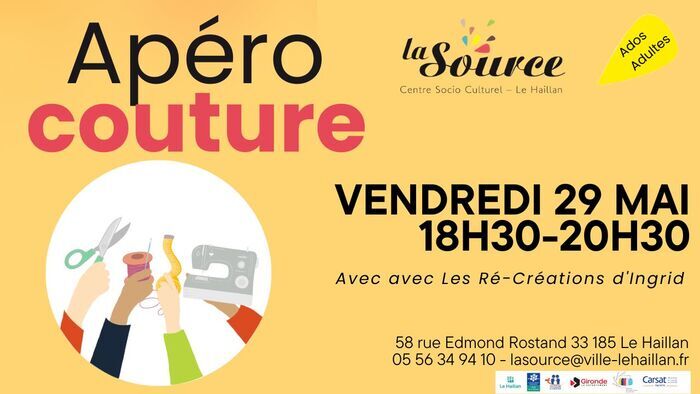 Inscription : https://www.helloasso.com/associations/centre-socio-culturel-la-source/evenements/apero-couture-mai